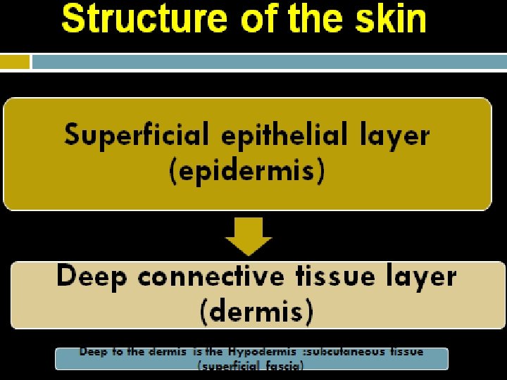 OBJECTIVES Describe layers of skin. Enlist the functions of skin. Define appendages of skin. Define Fascia. Ø Differentiate between Superficial and Deep Fascia. Ø Applied Anatomy Ø Ø