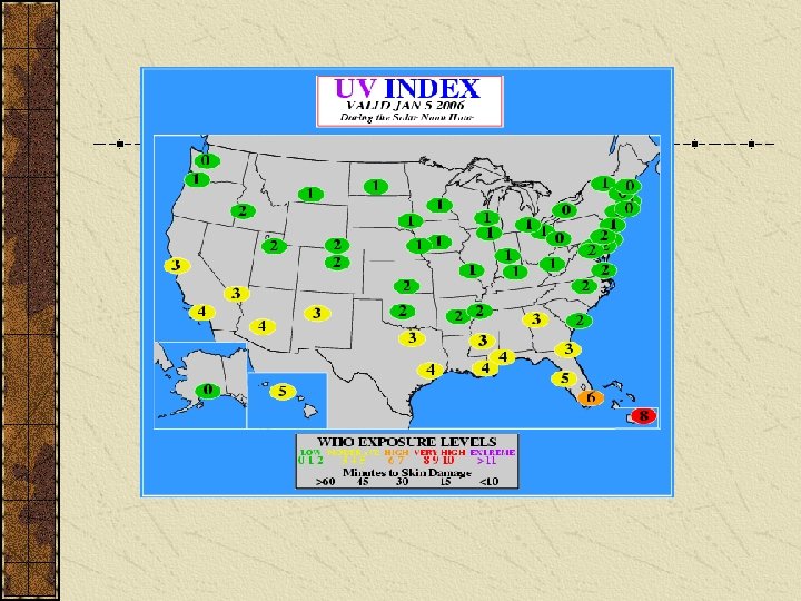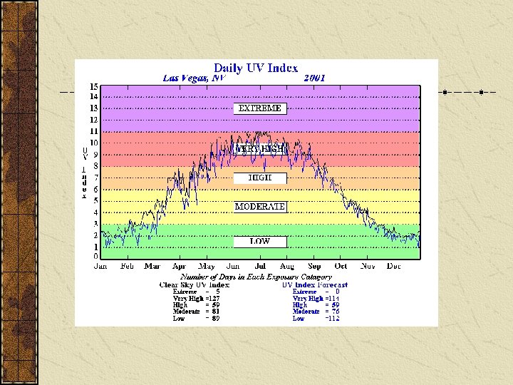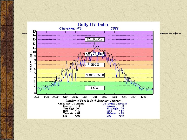 Ultraviolet (UV) Radiation UVA – UVB - UVC The sun radiates energy over a broad spectrum of wavelengths. UV radiation, which has a shorter wavelength than visible blue or violet light, is responsible for sunburns and other health effects: • Skin cancer • Cataracts • Suppression of the immune system • Premature aging of the skin