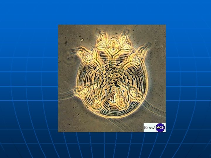 Classification n Class • Acarina (mites and ticks) n Family: Sarcoptidae and Psoroptidae n Sarcoptidae • Mites that burrow through epidermis n Sarcoptes, Notoedres, Knemidocoptes species n Psoroptidae • Mites that reside on the skin surface n Psoroptes, Chorioptes, Otodectes species