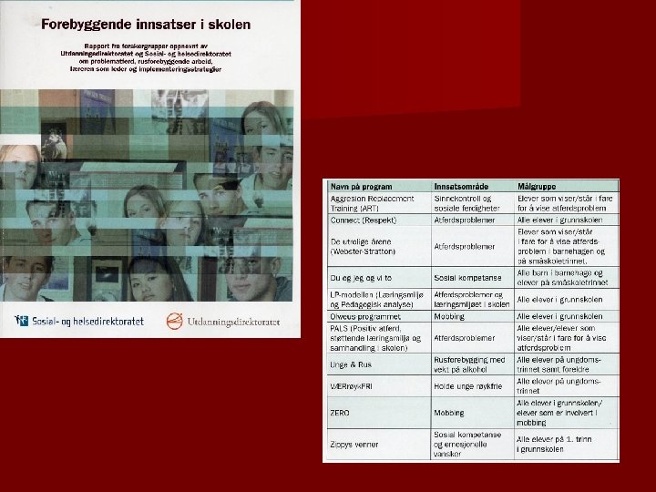Det rekker ikke med strukturerte program n Sosiale ferdigheter og kompetanse kan undervises på samme måte som skolefag – strukturert og autentisk læring. n Ferdighetene bør være sosialt nyttige for elevene og tilpasset alderstrinnet, n Læring og praktisering av sosial kompetanse påvirkes av skolekulturen og klassemiljøet – en kan ikke ”kurse” elevene til å bli sosialt kompetente, n Med andre ord: Skolen trenger en sosial læreplan!