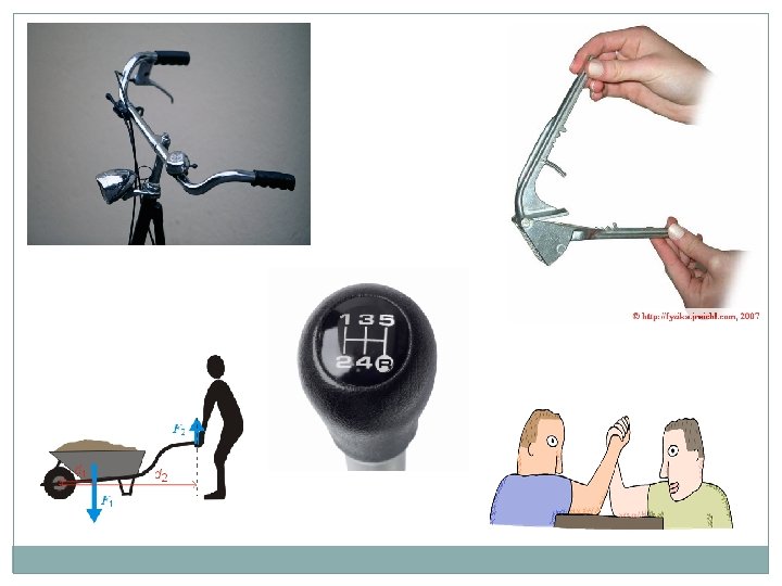 OTÁČIVÉ ÚČINKY SÍLY Páka – jednozvratná, dvojzvratná Rovnováha: F₁ · a = F₂ · b