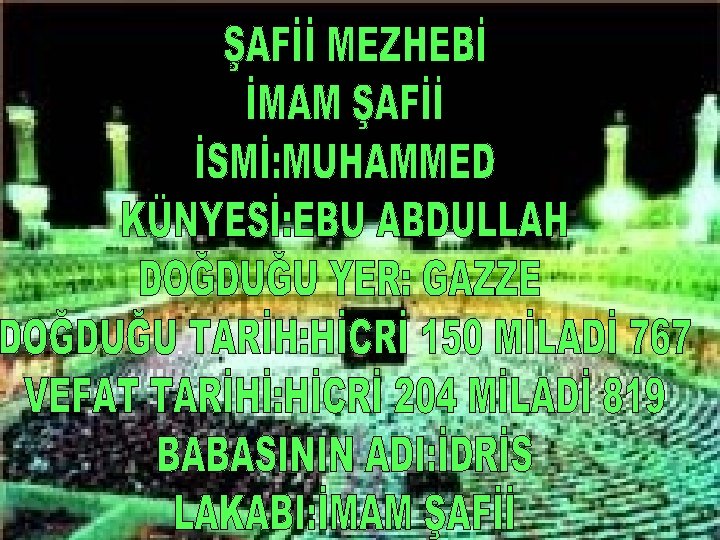 Şafii mezhebi Türkiye ve diğer yakın ülkelerde yaygındır ve Sünni bir mezhepdir. Şafii mezhebinin kurucusu İmam-ı şafii, Maliki ve Hanefi mezheplerinin usulleri yayılmaya başladığı ilk zamanlarda yetişti. Bu yüzden İmam-ı şafii mezheplerin yollarını izleme fırsatı buldu. Ve onlardan farklı bir usul takip etti. Fıkhın usulleri ile ilgili ilk eser olan "ER-RİSALE" isimli kitabı yazdı. Zaman içerisinde fakihler onun etrafında toplandılar ve onun geliştirdikleri usullere göre fetva verdiler. Böylece şafii mezhebi doğdu.