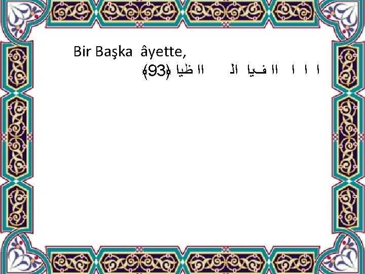 ﴾ ﺍﻭﺍ ﺍﺍﻡﻯ ﻯ ﺍ. ﴿ ﺍ ﻭﺍ ﺍﻟ ﺍ ﺍ ﺍﺕﻱ ﺍﻟ ﺍﺍ ﺍﻭ ﻑﻳﺍ ﺍﻭ ﻭﻭﺍ ﺍﻟ ﺍ ﺍ ﻭﺍ ﺍ ﺍ ﻭ ﺍ ﺍﺍ ﺍﺍ ﻭﺍ ﺍ ﻕﻳﺍ ﺍﻭ ﺍ ﺍ ﻭﺍ ﻑﻯ ﺍﻟ ﺱﻳﺍ “Allah’ın, sizin için geçim kaynağı yaptığı mallarınızı aklı ermezlere vermeyin. O mallarla onları besleyin, giydirin ve onlara güzel söz söyleyin. Yetimleri deneyin. Evlenme çağına (buluğa) erdiklerinde, eğer reşid olduklarını görürseniz, mallarını kendilerine verin. Büyüyecekler (ve mallarını geri alacaklar) diye israf ederek ve aceleye getirerek mallarını yemeyin. (Velilerden) kim zengin ise (yetim malından yemeğe) tenezzül etmesin. Kim de fakir ise, aklın ve dinin gereklerine uygun bir biçimde (hizmetinin karşılığı kadar) yesin. Mallarını kendilerine geri verdiğiniz zaman da yanlarında şahit bulundurun. Hesap görücü olarak Allah yeter. ” Nisâ, 4/5, 6