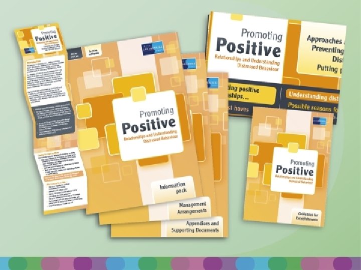 What is in this PPRUDB Pack to support in managing behaviour? • It is a guide all establishments in managing relationships and understanding distressed behaviour through: • A Management Arrangements Booklet • An Establishment Guide • Appendices that will help promote safety • Concertina for all • Poster for all establishments • EPs will promote as will Social Work