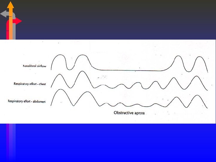Obstructive Sleep Apnea • Most common of the sleep apneas. • Partial or complete obstruction of the upper airway during sleep. • Absence of airflow at the nose/mouth but inspiratory efforts are present; O 2 desaturation. • Can develop Cor Pulmonale.