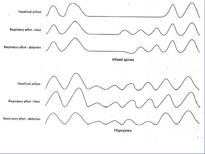 Mixed Apnea • Combination of Obstructive and Central • Begins as central apnea followed by obstructive apnea • Down’s Syndrome