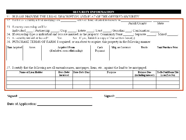 Niche Lenders ü Life insurance companies – large real estate loans. ü Merchants and dealers – finance purchase or lease of their machinery and equipment. ü Farm Service Agency – government lender making subsidized loans to small and beginning farmers, direct lender of last resort, source of emergency loans, and source of guarantees on loans made by others.