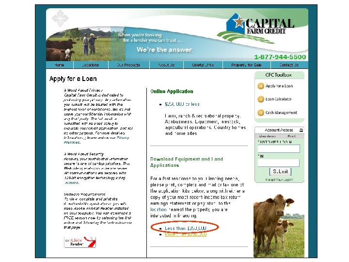 You can apply electronically for various types of loans from the Capital Farm Credit Association.