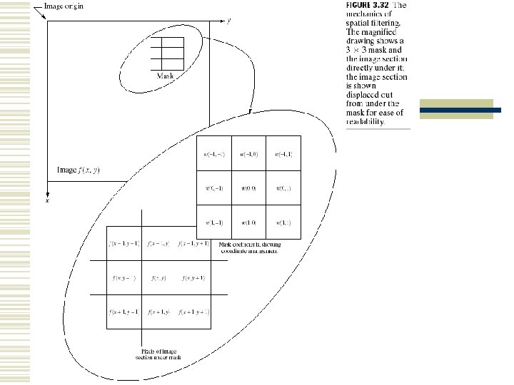 Image smoothing = image blurring Averaging of brightness values is a special case of discrete convolution. For a 3 x 3 neighborhood the convolution mask w is Applying this mask to an image results in smoothing. Matlab example program is filter. Ex 1. m • Local image smoothing can effectively eliminate impulsive noise or degradations appearing as thin stripes, but does not work if degradations are large blobs or thick stripes.