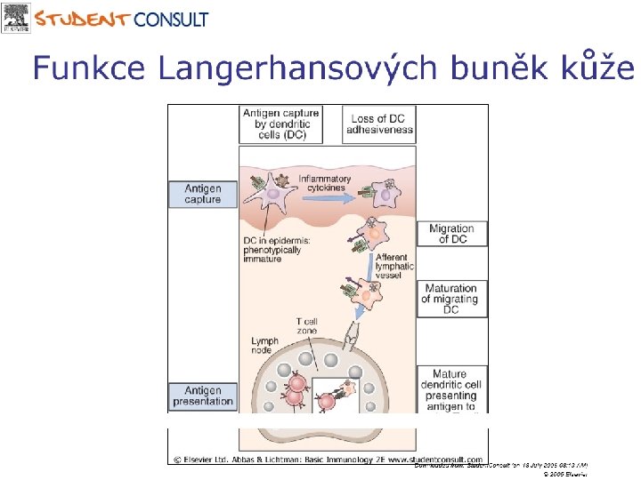 Kůže - poškození nebo průnik infekce • • Dendritické bb – zachycují Ag, prezentace T-lymfocytům v lymfatické uzlině Vznik efektorových a paměťových T-lymfocytů Putování do místa zánětu