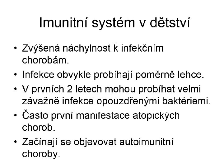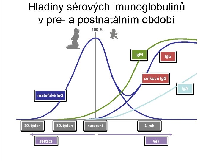 Význam kojení • Hlavním imunoglobulinem v mateřském mléku je sekreční Ig. A: neutralizuje viry, je baktericidní, agreguje antigeny, brání adherenci bakterií na povrch epitelových buněk, dále Ig. G a Ig. M • TGF-β, IFN-γ, laktoferin, lysozym, defenziny, komplement • buňky v mateřském mléku : fagocyty, především makrofágy(60%), neutrofily 30% lymfocyty, (8%) především CD 4, eosinofily, epitelové buňky • Hlavním zdrojem je kolostrum • Kolonizace mikroorganismy – kojené děti 80% G+ bakterií • Modulace imunitní odpovědi, přechod od Th 2 a do Th 1, • snižuje výskyt infekcí, i autoimunitních chrob