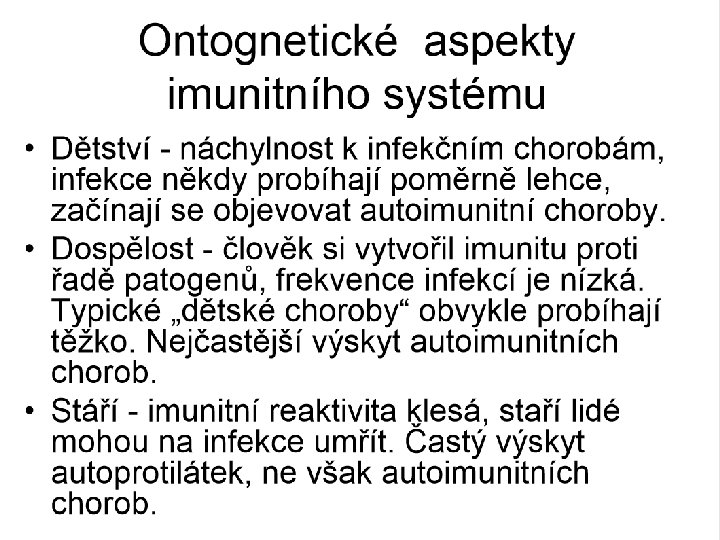 Imunitní soustava dozrává perinatálně, tehdy je také uzavírána "inventura" vlastních antigenů ALE !! zralé gamety, jejich přídatné tkáně a endokrinně aktivní buňky se objevují až v období puberty jejich orgánově specifické antigenní znaky jsou proto vnímány jako cizí