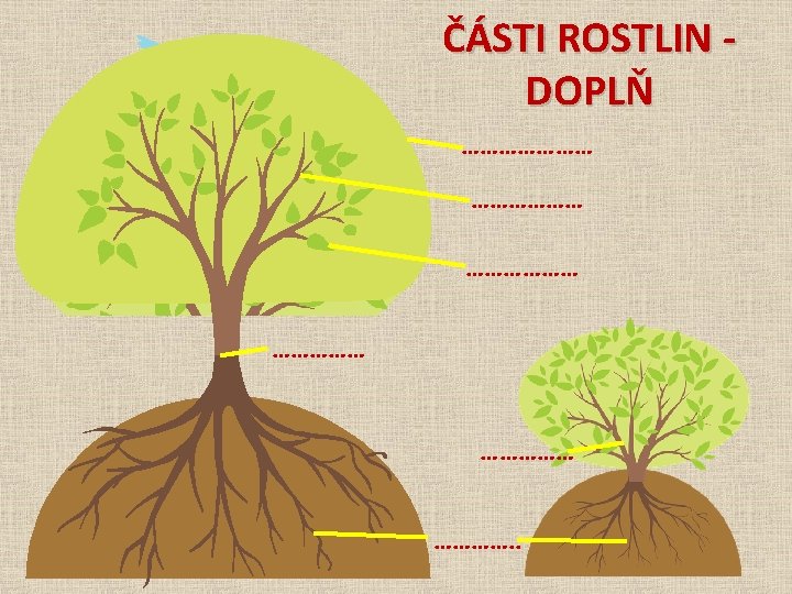 ČÁSTI ROSTLIN - podzemní Kořeny • upevňují rostlinu v půdě • rostlina jimi přijímá z půdy vodu a živiny