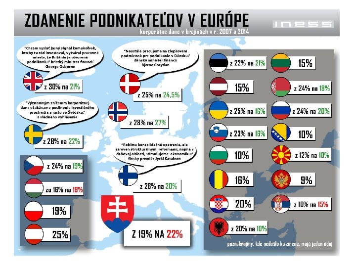 Daňovo-odvodové príjmy štátu vzrástli medzi rokmi 2012 a 2013 o 8 % Zvýšenie maximálnych vymeriavacích základov pre výpočet odvodov Nárast minimálnych odvodov, obmedzenie paušálnych výdavkov pre živnostníkov na 5400 eur ročne(!)