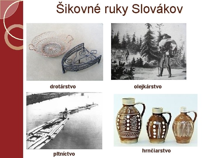 Šikovné ruky Slovákov drotárstvo pltníctvo olejkárstvo hrnčiarstvo