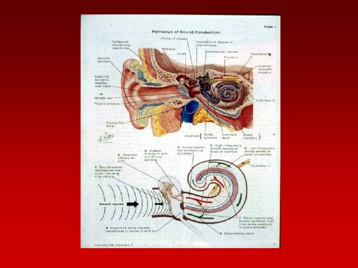 Sluchový nerv (n. acusticus) • Vychází z ganglia v modiolu, vnitřním zvukovodem na dno 4. komory, končí v jádrech na téže i druhé straně • Sluchové dráhy • Od jader až do kůry mozkové – Insula Reili, Heschlovy závity • Četné spoje k různým oblastem mozku • (okohybné nervy, vegetativní systém, motorická jádra)