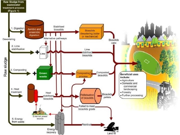 1. Digestion • Many sludges are treated using a variety of digestion techniques, the purpose of which is to reduce the amount of organic matter and the number of disease-causing microorganisms present in the solids. • The most common treatment options include i) anaerobic digestion, ii) aerobic digestion, iii) composting.
