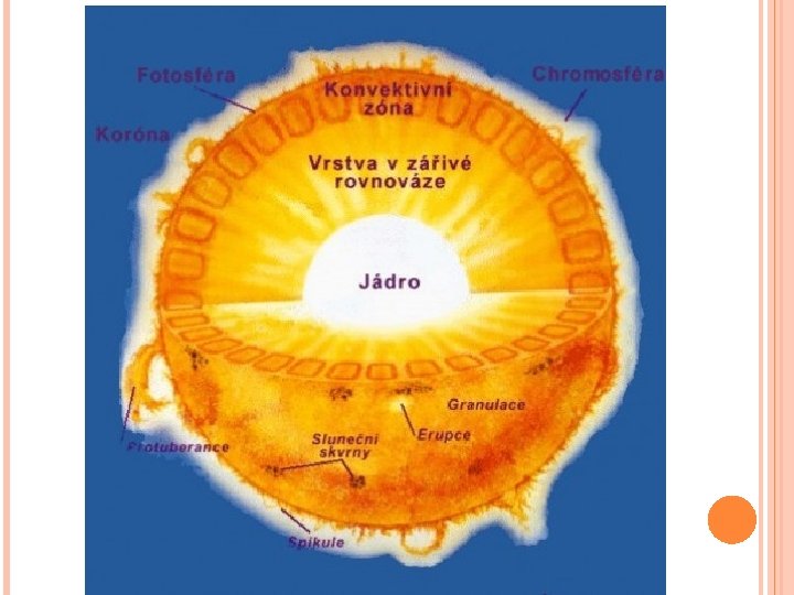 STRUKTURA JÁDRO TERMOJADERNÁ FŮZE VRSTVA V ZÁŘIVÉ ROVNOVÁZE TACHOKLINA KONVENTIVNÍ ZÓNA FOTOSFÉRA CHROMOSFÉRA PŘECHODOVÁ OBLAST KORÓNA