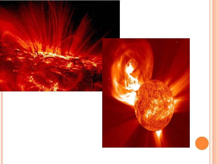 SLUNEČNÍ ERUPCE Je prudký výbuch ve sluneční atmosféře s energií Může zasáhnout elektrické přenosy komunikačních zařízení (počítače, mobilní telefony, automobily, …) Poprvé pozorována roku 1859 (hvězdné erupce byly také pozorovány u mnoha jiných hvězd) Když je Slunce zvlášť „aktivní„ = několik erupcí denně Když je Slunce „klidné„ = i méně než jednou týdně