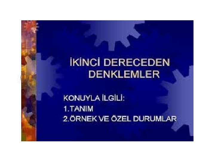 2. DERECEDEN DENKLEMLER a, b, c sabit birer gerçel(reel) sayı ve a≠ 0 olmak üzere ; ax 2+ bx + c=0 biçimindeki eşitliklere ikinci dereceden bir bilinmeyenli denklem denir.