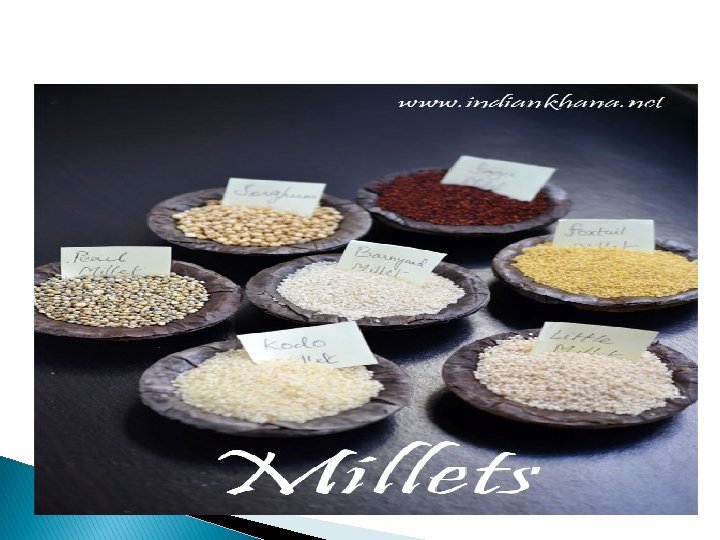 WHY SHOULD WE INCLUDE MILLETS IN OUR DAILY DIET? Ø Millets are high in their nutrient content. Ø Millets need very little water for their production. Ø Millets are three times nutritionally superior to rice and wheat. Ø Millets can be easily cultivated in drought conditions.