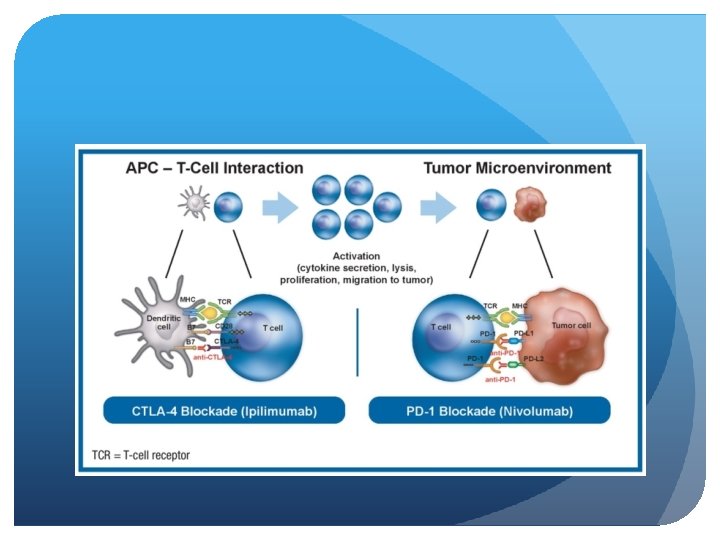 Immunotherapy Checkmate 451 (ASCO 2016) Ipilumumab and Nivolumab as second line and maintenance therapy in patients with extensive stage disease Adult pts with ED-SCLC who achieve stable disease or better after first-line PT-DC and have ECOG performance status 0– 1 are eligible. Pts with active central nervous system metastases, autoimmune disease, or toxicities attributed to prior anticancer therapy not resolved to grade ≤ 1 were ineligible. Primary endpoints are overall survival and progression-free survival.