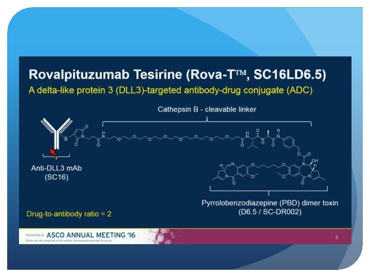 Delta-Like Protein 3 (DLL 3) An atypical inhibitory Notch Ligand Induced by the key neuroendocrine transcription factor, ASCL-1 Aberrant cell surface expression in >80% of small cell lung and large cell neuroendocrine cancers On both cancer stem and tumor cells, but normal adult tissues Not prognostic, and does not predict response to chemo