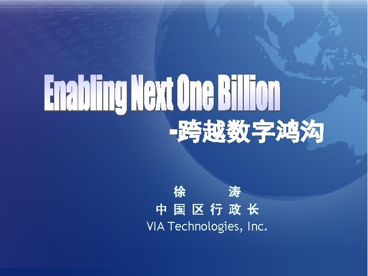 结合两岸优势消弥数字鸿沟 --〉大陆资源+ 台灣PC產業優勢 IC的設計與生産 (本土化 - 中國芯) Key Components 威盛 (本土化 ) u. Completely Technologies CPU HDD Chipsets DRAM Module DRAM Display AOC Other IC Keyboard+ Mouse Software u. Silicon and System Tech 渠道 业者 品牌+Channel 運作平台 u. Distribution u. Logistic 設計中心 與創新 制造商 u. PC Design u. Manufacturing Capability u. Logistic Sales Channel
