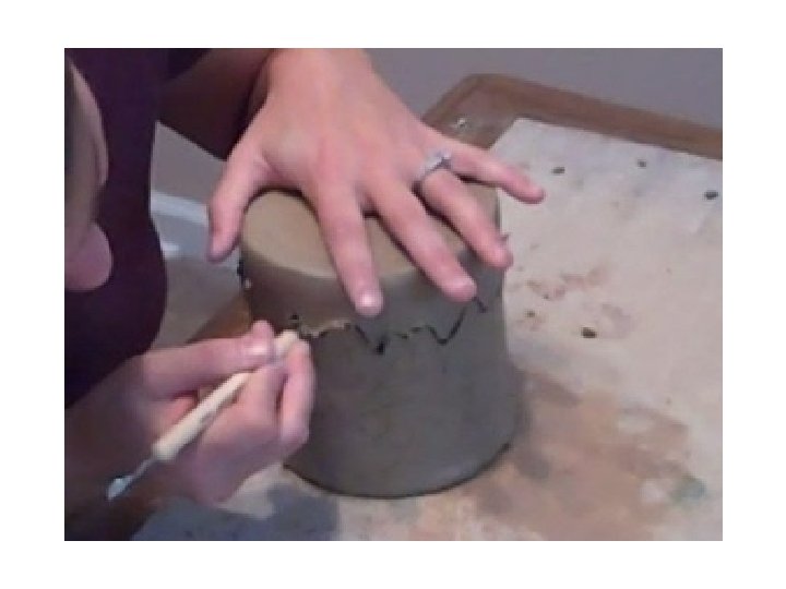 Making the Lid 1 – When your piece is leather-hard, you can cut the lid. • Create a notch in the lid so that it will fit well together. Do not go too complex with the cutout notch… it will have a greater chance of NOT fitting. Make sure the lid can be lifted off! • Draw out the line of the lid on your piece with a pencil or modeling tool first, then cut it out.