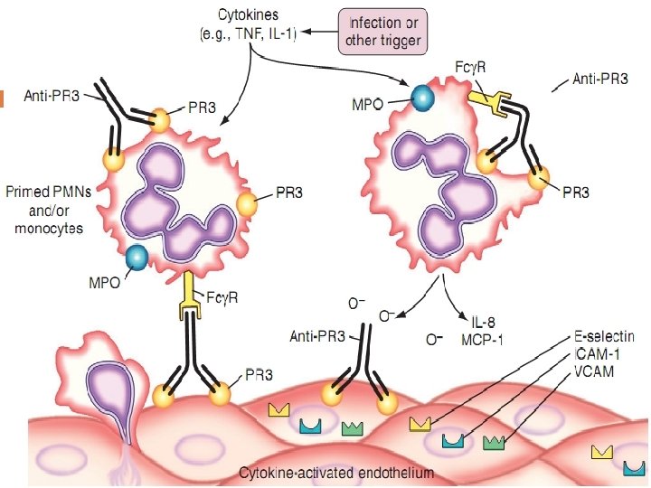 c-ANCA Serum from patients bind to cytoplasmic granules and show a granular appearance on immunofluorescence Proteinase-3 (PR-3) is the major antigen Serine protease Present in azurophilic granules