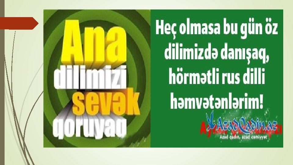 Heç olmasa ətrafımızda belə halları görübdə rus dilini deyil, ana dilimizi təbliğ edək – öz ana dilimizi, Azərbaycanımızın dilini. Heç olmasa oturan yerdən bunu vətənimiz üçün edək. . .