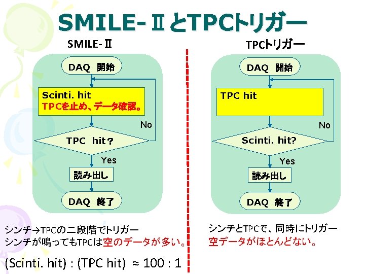 デッドタイムのちがい SMILE-Ⅱ TPCトリガー veto Scinti. hit TPC scinti. 同時 hit