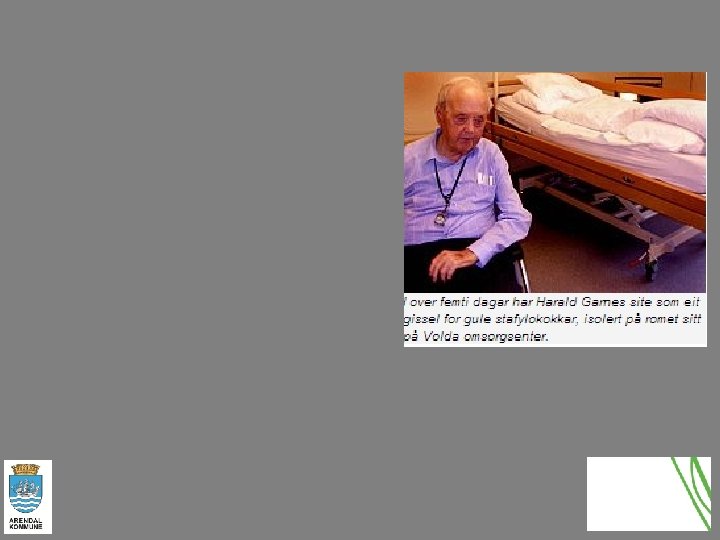 MRSA: Hva er det? • Gule stafylokokker som er resistente mot en del viktige antibiotika (penicilliner, cefalosporiner. . ) og derfor krever andre, dyrere antibiotika • Gule stafylokokker kan gi sårinfeksjoner, lungebetennelser og blodforgiftning, særlig hos eldre og nyfødte, hos opererte og hos intensivpasienter • Rundt 1% av gule stafylokokker funnet i blod og sår er MRSA • Problemet for sykehus og sykehjem: Hvis andelen MRSA blir høy, må man ved empirisk behandling av lungebetennelse, sårinfeksjon eller blodforgiftning velge antibiotika som tar også MRSA