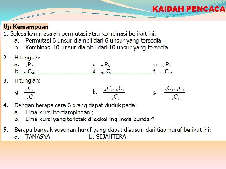 KAIDAH PENCACAHAN, PERMUTASI DAN KOMBINASI MATEMATIKA ITU MUDAH DAN MENYENANGKAN