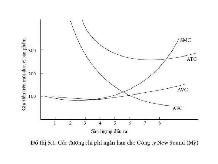 Chi phí trong sản xuất ngắn hạn Tổng chi phí biến đổi (TVC) Tổng chi phí cố định (TFC) Tổng chi phí (TC): TC= TVC +TFC Chi phí biên ngắn hạn (SMC): phần tổng chi phí chênh lệch khi có sự thay đổi một đơn vị đầu ra. SMC = ΔTC/ΔQ = ΔTVC/ΔQ • Chi phí biến đổi bình quân (AVC): AVC=TVC/Q • Chi phí cố định bình quân (AFC): AFC=TFC/Q • Tổng chi phí bình quân (ATC): ATC=TC/Q • •