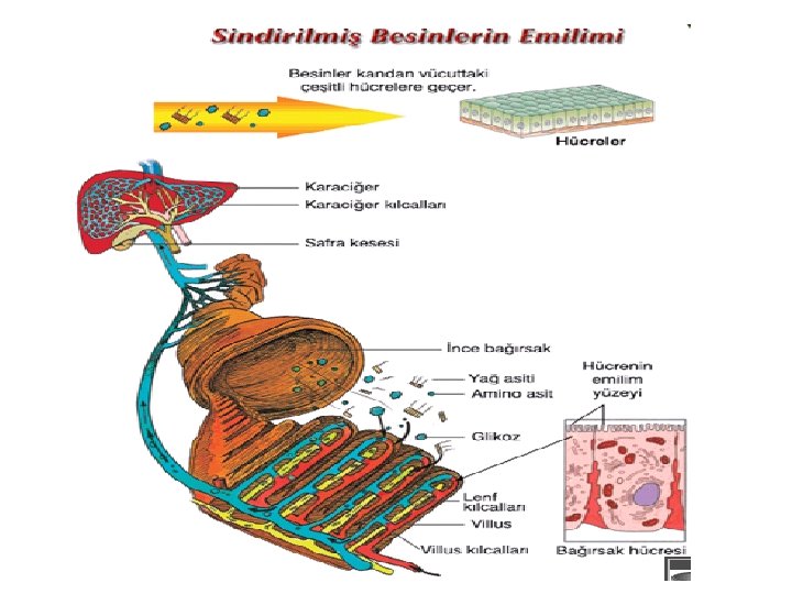 Karaciğer ince bağırsağa safra salgısı salgılar Çeşitli maddeler içeren safra yağların mekanik parçalanmasını sağlar. Karaciğerin bilinen 400 görevi vardır. Vücudun sanayisidir.