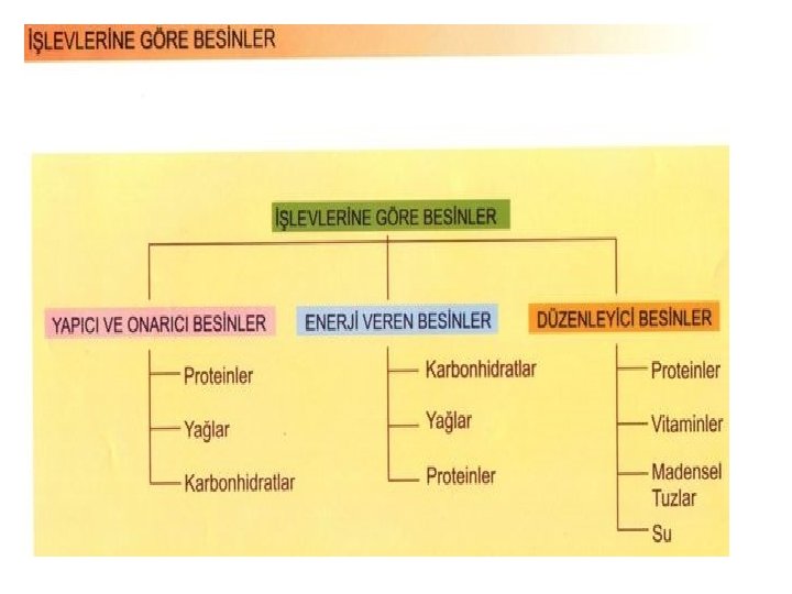 Canlıların eneri elde etmek , büyümek , ve hayatını devam ettirmek için kullandıkları yiyecek ve içeceklere BESİN adı verilir. Protein Yağ Karbonhidrat BESİN vitamin mineraller su Besinlerden su, mineral ve vitaminler çok küçük yapılı oldukları için sindirim organlarında parçalanmadan kana geçerler