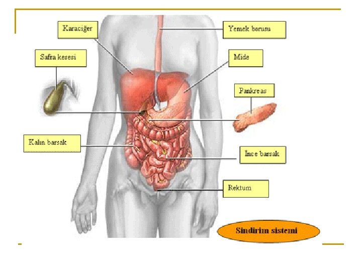KARACİĞER( Sindirime yardımcı organ) n Karaciğer, hayatın devamı için oldukça önemli olan işlevleri yerine getirir. Bir çok maddenin üretilmesi, depolanması ve salgılanması karaciğerde gerçekleşir.