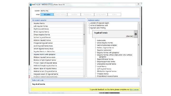 Approach 2: example Take the previous search codes and map these to SNOMED CT Following example illustrates the approach and why some results may be different once data entry moves to SNOMED CT How can this be transformed into SNOMED CT? 43
