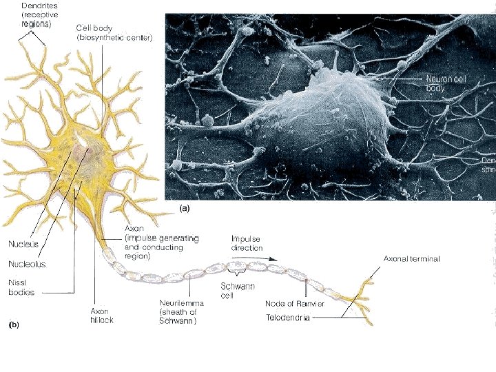 Sinir hücresinde Perikaryon (Corpus neurcyti), Dendrit ve axon adı verilen bölümler vardır. Dendritler Axon duyuları alırlar ve Neurocaryon’a iletirler. İmpulsu gövdeden uzaklaştırırlar.