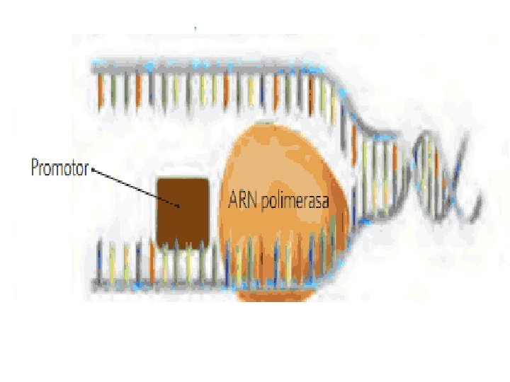 Etapas de la transcripción 1. - Iniciación : Se ubican factores de transcripción al promotor que se ubica al lado del sitio de inicio. El promotor es una secuencia de genes llamada caja TATA, vecina al sitio de inicio. El sitio de inicio es la secuencia “TAC”.