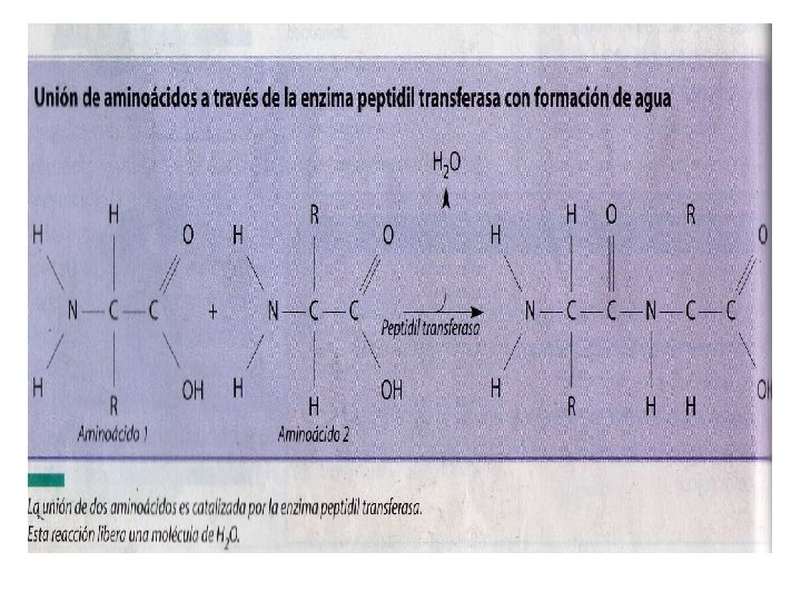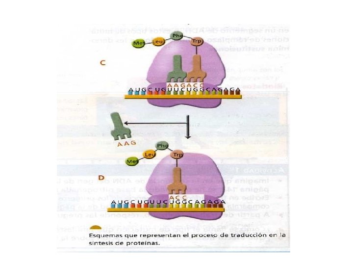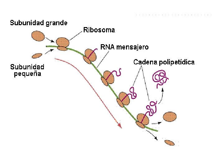 • Se separan las dos subunidades de los ribosomas y la cadena de polipéptidos se desprende quedando liberada.