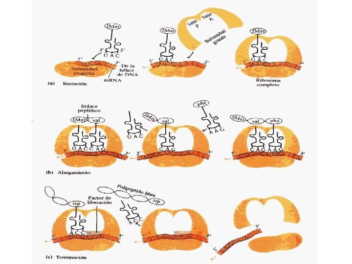 Etapas de la traducción • Iniciación • Elongación • Terminación