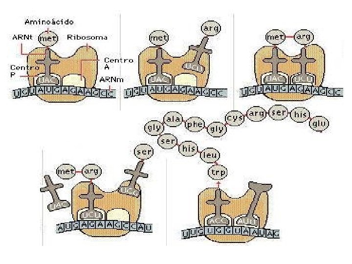 Conteste • 1. -- Define conceptos de enlace peptídico, anticodón, sitio A y sitio P. • 2. -A partir de la secuencia de ARNm, escribe la secuencia de ADN complementaria y la secuencia de anticodones de los ARNt, compáralas. AUGUGGCAGAUGUCA