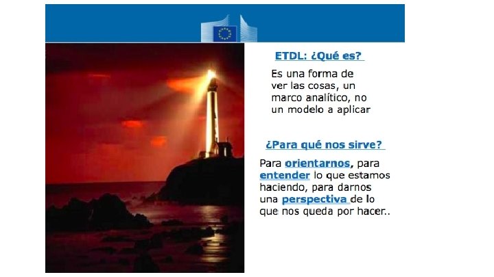 FINALIDAD DE ETDL ü COHESION SOCIAL ü RESPUESTAS LOCALES A DESAFIOS ü CONSTRUIR INSTITICIONES Y METODOS DE TRABAJAR ADECUADAS A LOS RETOS