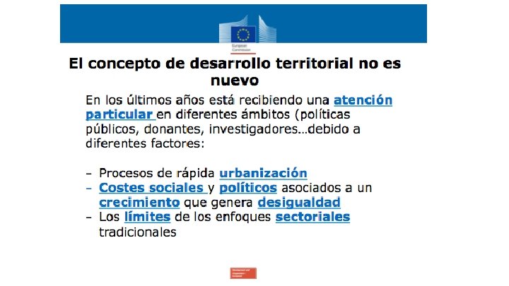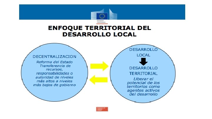 Apoyar lógicas de ETLD Significa tambien asegurar “coherencia territorial" : 1) En las políticas públicas del gobierno central 2) En las políticas de las cooperaciones