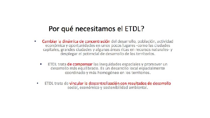 ü Localización de politicas nacionales ü Hyperlocalismo ü ETDL limitado a la jurisdicción ü Desvinculación con lo nacional