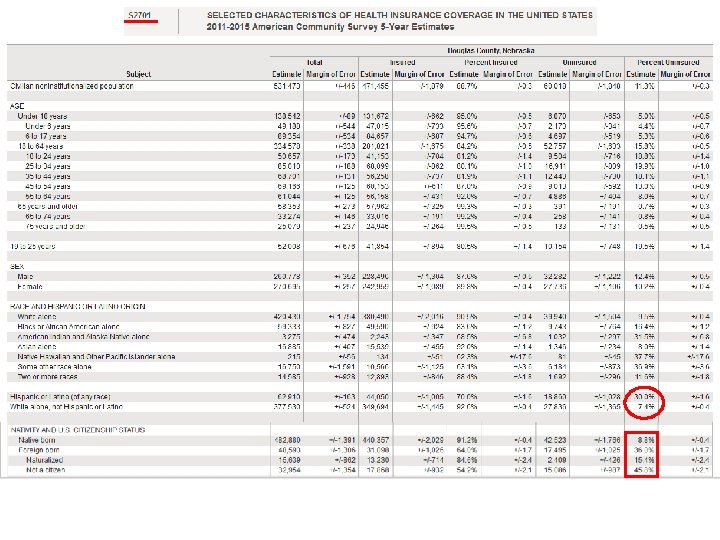 You can target programs where health insurance might be needed… Note: the correlation coefficient between the foreign born % and the uninsured % for the 156 Douglas County tracts in the 2011 -15 ACS was 0. 74 (highly correlated).