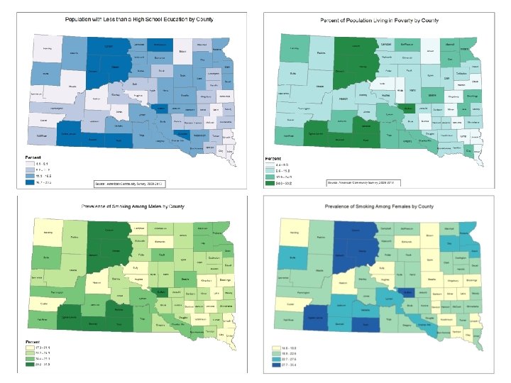 References • • • Robert Wood Johnson Foundation, Exploring the Social Determinants of Health. Issue Brief #1: What Shapes Health-Related Behaviors Robert Wood Johnson Foundation, Commission to Build a Healthier America. Issue Brief 3: Neighborhoods and Health. September 2008 Robert Wood Johnson Foundation, Exploring the Social Determinants of Health. Issue Brief #4: Income, Wealth and Health Robert Wood Johnson Foundation, Exploring the Social Determinants of Health. Issue Brief #5: Education and Health Robert Wood Johnson Foundation, Exploring the Social Determinants of Health. Issue Brief #6: Race, Socioeconomic Factors and Healthy People 2020 www. healthypeople. gov South Dakota Department of Health, Behavioral Risk Factor Surveillance System Institute for Health Metrics and Evaluation. www. healthdata. org/us-county-profiles County Health Rankings www. countyhealthrankings. org