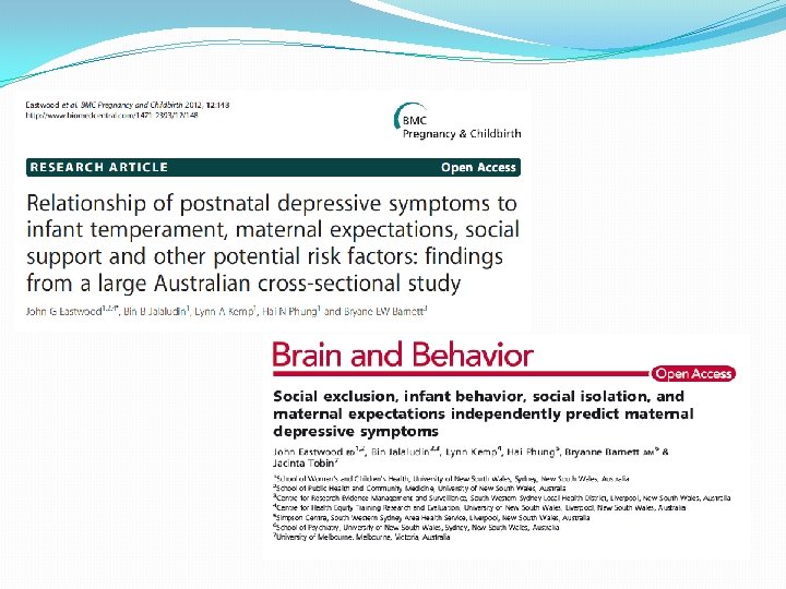 Study One: Overview of Literature �Impact of depression �Foetal sequelae of cortisol crossing placenta �Preterm labour �Foetal Development affected �Infant temperament affected �Insecure attachment �Breastfeeding �Shaken baby